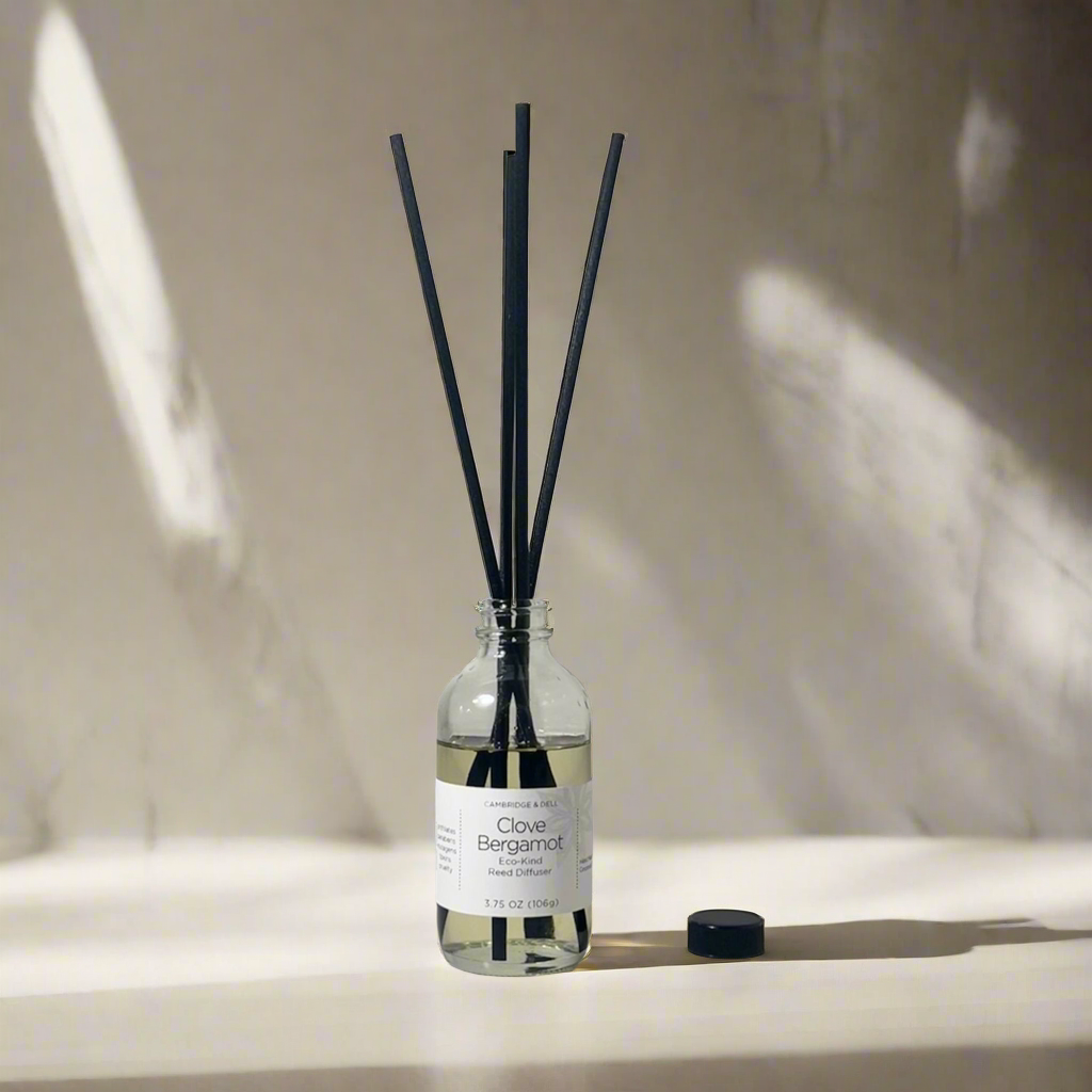 Add fragrance to any room without flames or heat with our Clove Bergamot Eco-Kind Reed Diffuser.