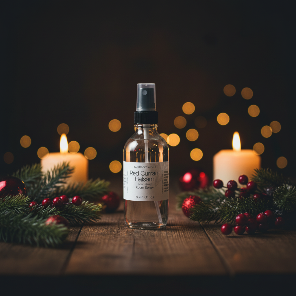 Bright, tart, and woodsy—our Red Currant & Balsam room spray balances the sweetness of ripe cranberries and currants with the earthy richness of balsamic notes. Fresh fir and sturdy oak create a grounding, evergreen base that feels both festive and timeless. This room spray brings a perfect harmony of fruit and forest, filling your home with a crisp yet cozy glow that’s ideal for the holiday season and beyond.